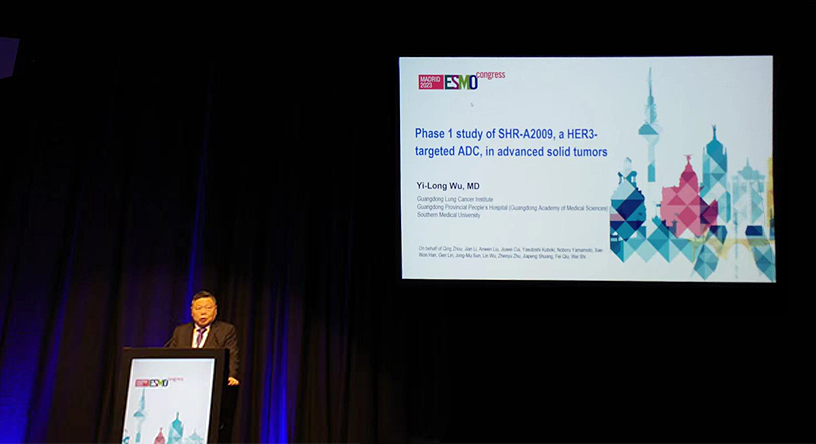 10月23日,永利娱乐城医药创新药、HER3靶向ADC药物SHR-A2009治疗晚期实体瘤的I期研究亮相2023 ESMO大会简短口头报告现场5。该研究由广东省人民医院的吴一龙教授牵头开展,吴一龙教授在现场公布该研究的重要进展。研究结果显示,SHR-A2009在经治晚期实体瘤患者中显示出可控的安全性和令人鼓舞的抗肿瘤活性。目前评估更高剂量的SHR-A2009在选定癌症类型(NSCLC和其他实体肿瘤)中作用的试验正在进行中。